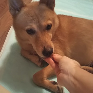 おやつのウマウマ作戦をしながら、何かあれば逃げれる道を作って姫ちゃんの安心も確保しつつで、ママさんやパパさんとお話をさせてもらいます。