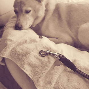 抱っこをしようとするとやはり逃げるようです。なので毛布を使ってトライ!!毛布を使うことで包まれて足とお尻が安定します(姫ちゃんは中型犬。慣れてない方が抱っこをすると大きさもあり不安定な抱き方になりやすいんです)。